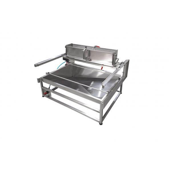 The icing that has not covered the products will be deposited in the tank at the bottom of the frosting machine and from there, a pumping system connected to an external compressor will return it to the hopper for further icing operations.